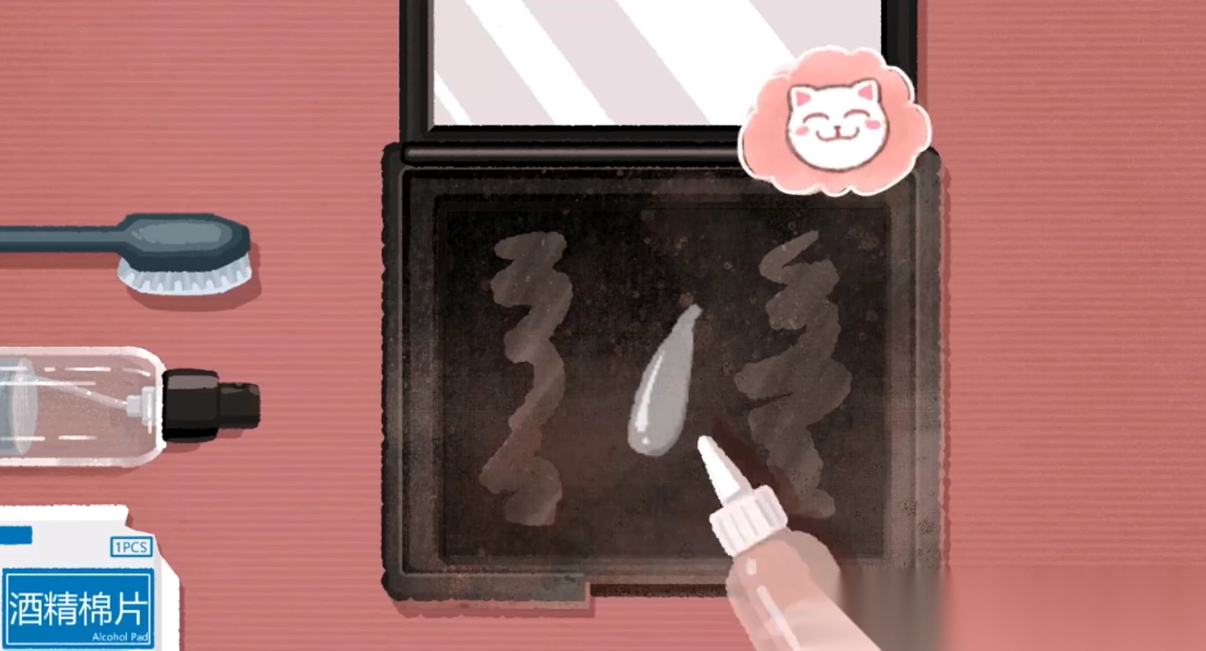 腮红盒也用万能清洗剂擦一下。