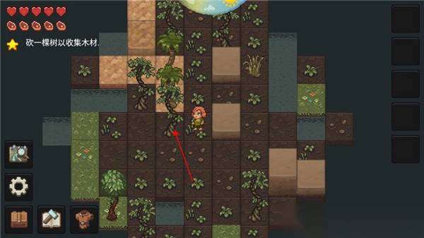 -初期资源首选“木材”,砍树并制作木斧。
