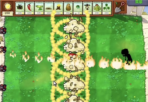 火爆辣椒:除了自带火焰之外,还能让所在列触发土豆雷式的爆炸,并且会伴随星星特效,短暂延迟后,将再次释放两排辣椒的效果。