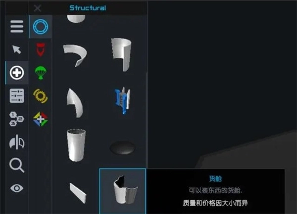 航天飞机货舱的设计中,多数产品配备三个连接端口,其外形调整范围相对固定;不过货舱的开合角度支持自定义设置,具体的调节方式可查阅后续的零件高级配置说明页面。
