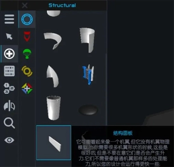 这段部件主要用于飞机的进气口位置,能提升飞机飞行时的稳定性;同时它也可作为结构面板类的装饰件用于火箭——我一般会把它安装在火箭尾部,用来包裹体积较大的火箭发动机。另外,通过调整其颜色或花纹样式,还能增强火箭外观的真实感与立体感。
