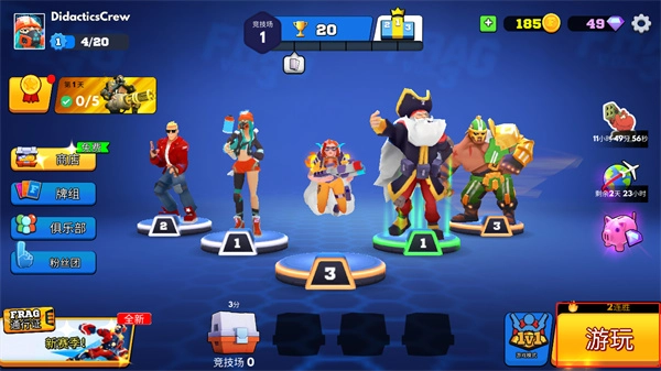 这款名为FRAG的卡通科幻射击游戏中,玩家将以超级英雄的身份带领团队投身各类战斗。每次胜利都能获取丰富材料,用于打造角色专属装备以提升战斗效率。区别于传统射击竞技玩法,游戏融入了卡牌机制,在关键节点使用卡牌可对敌人造成致命打击,甚至实现战局逆转。