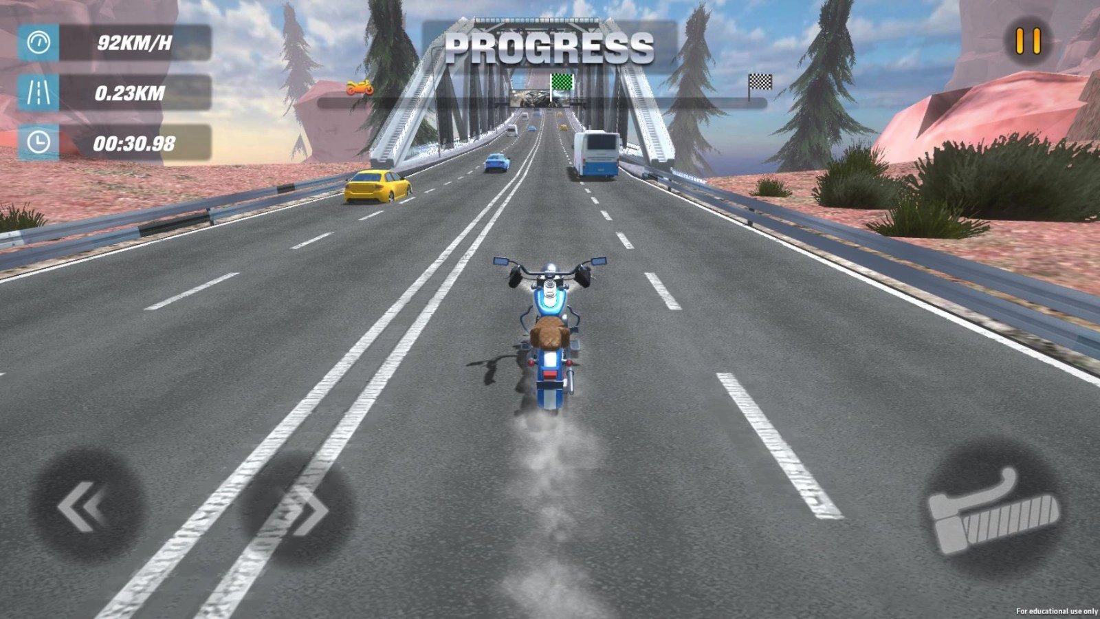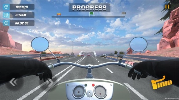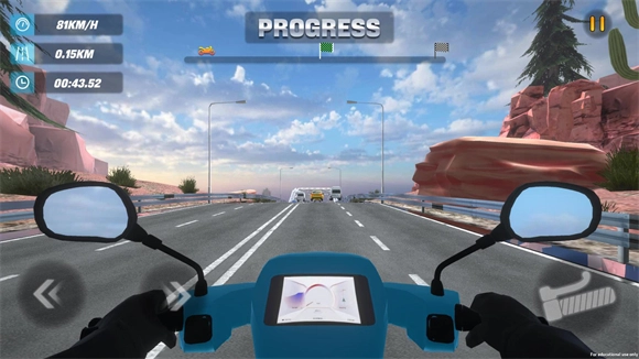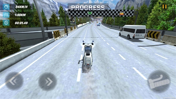 要熟练驾驭车辆,需借助屏幕左半部分的虚拟操控杆来调整行进方向,右半侧则配备了用于提升速度、降低车速以及开启强力推进的功能按键。此外,通过倾斜手持设备的角度,能够模拟实际骑行时身体重心的变化,从而让操控动作更具准确性。