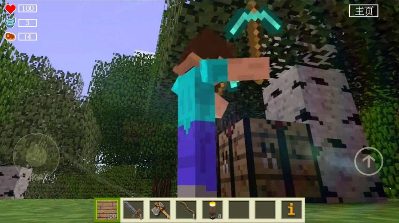 借助斧头、镐这类基础工具,收集木头、石头、铁矿等各类资源。