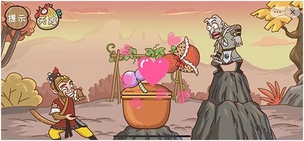 通关技巧:先点击孙悟空,接着迅速点击手,直到手的动作变成爱心形状就能通关啦。