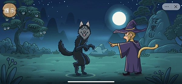 通关小技巧:第一步先点击太阳让场景切换到黑夜,接着点击二郎神的眼睛使其变成狼,最后点击猴子的眼睛让猴子变为预言家,这样就能顺利通关啦。