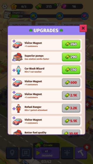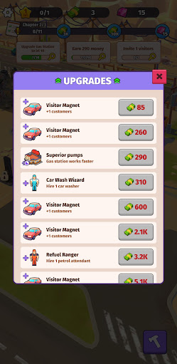 升级你的加油站,拓展业务版图,招募更多员工,持续扩大加油站规模,逐步构建属于你的商业帝国。