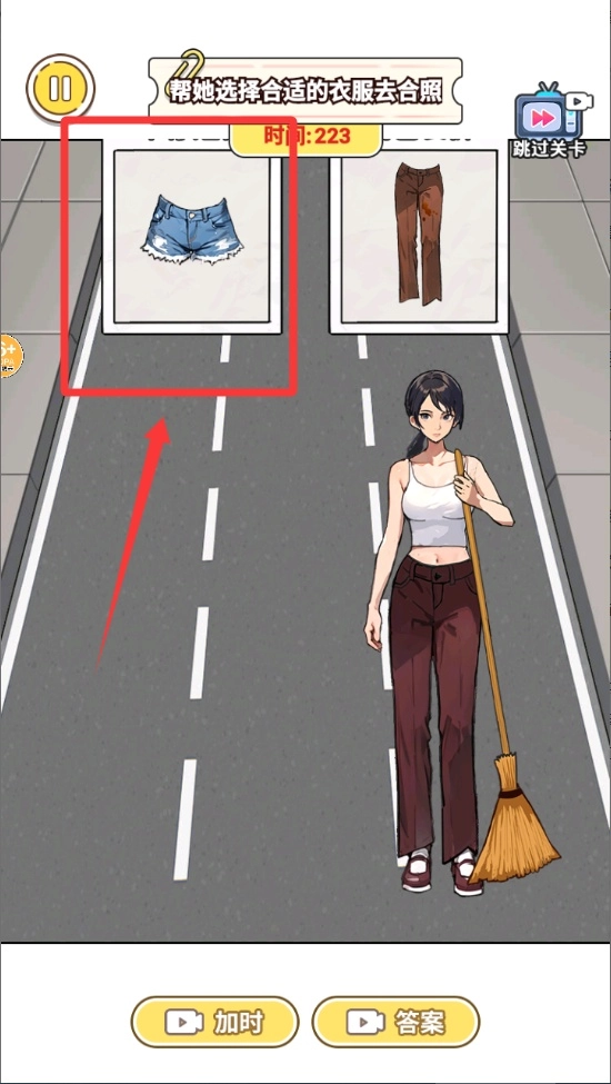 进入换装环节后,向左滑动角色进入衣帽间区域,点击试穿展示柜里的时尚短裤,搭配好就能解锁新剧情。
