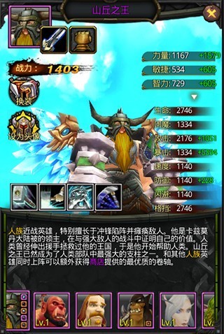 山丘之王,集防御、输出与控制于一身的三合一英雄,助你轻松通关,是虐杀新手、追赶老手的必备之选。