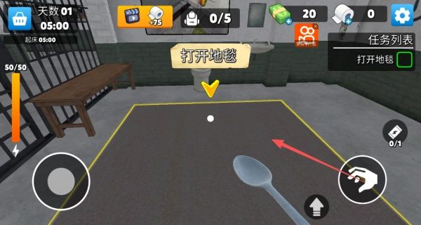 掀开地毯就可以开始你的挖掘任务了,不过得小心别被狱警察觉。