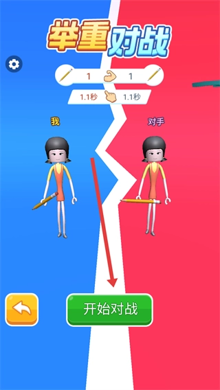 在举重对战页面点击开始对战按钮,系统会匹配对手,随后进入实时对战环节。