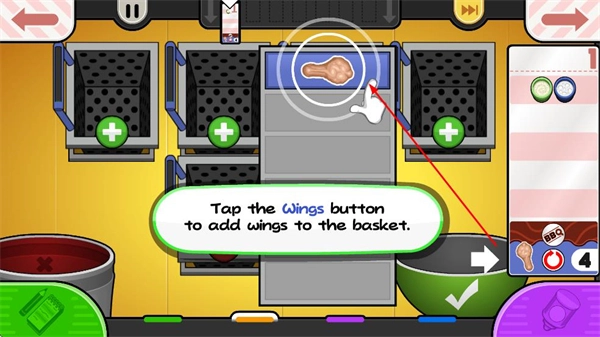 点击相应按钮,把食材添加到容器里,这是美食制作流程的第一步,要保证食材准备妥当。