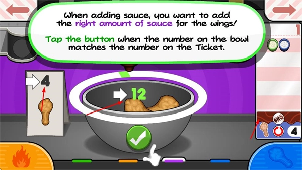 添加酱料时,要核对票据上的数字和碗上的数字,只有当两者数字相同时再点击按钮,以此来精确把控酱料的添加量。