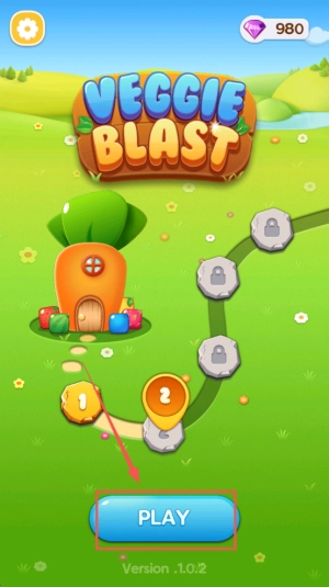 启动游戏的步骤如下:先打开游戏主界面,确认版本号为1.0.2,然后点击“PLAY”按钮进入关卡地图。