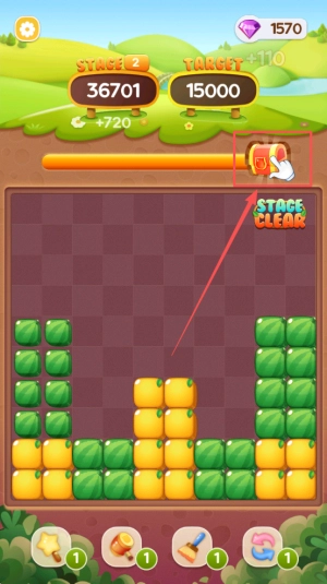 完成关卡:进入第二阶段,达成目标分数36701,收集110分与720分的加分,点亮阶段英雄。