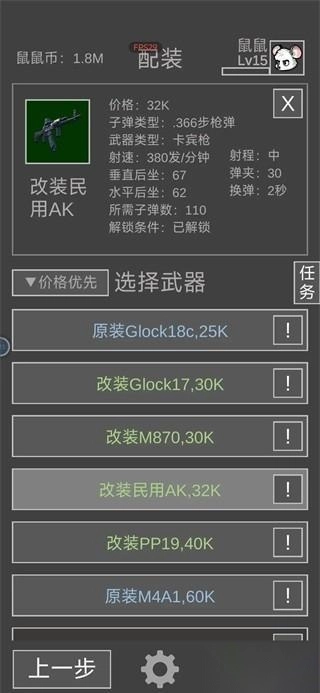 武器选中距离以上的武器,前期只有AK是中距离