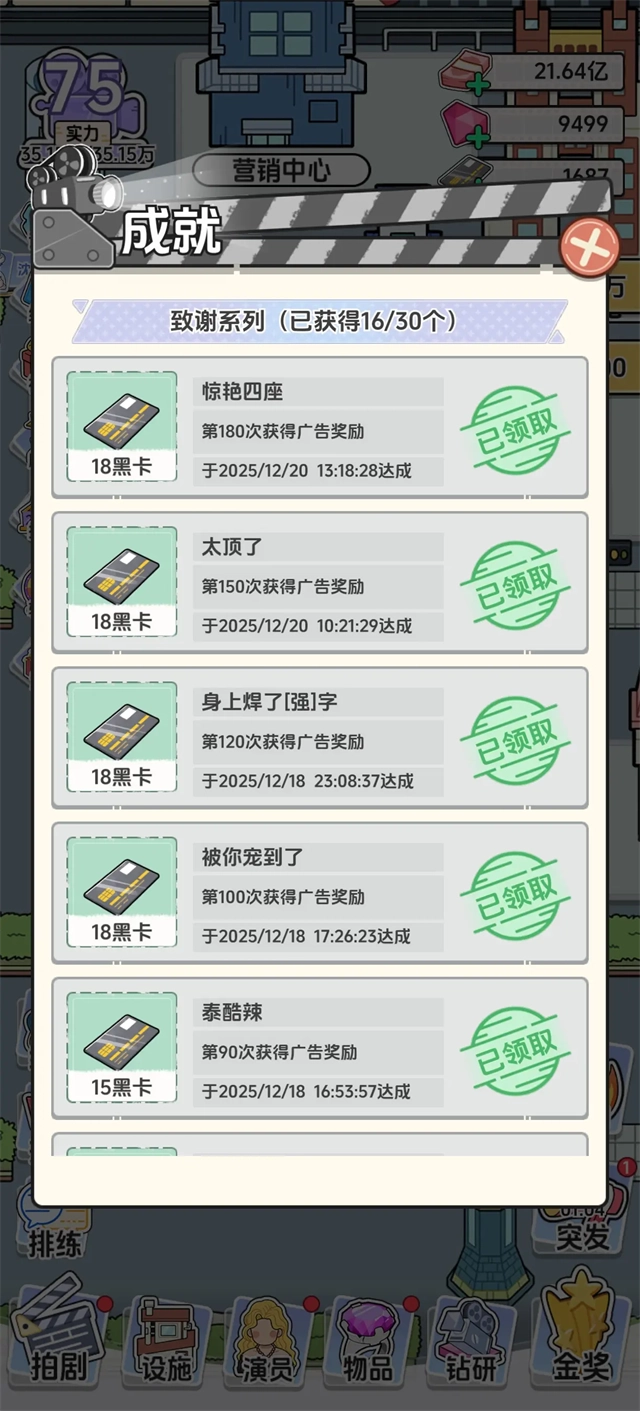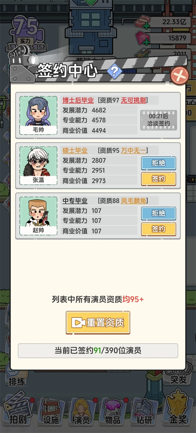 《我要拍短剧》是一款策略经营养成类游戏。玩家将化身影视学院导演系毕业三年的新人,在某公司初获认可后,瞅准短剧风口,毅然创立属于自己的演艺公司。从搭建公司基础架构,到签约潜力演员、挖掘独特题材、全程主导短剧制作,再到对接平台发行、精心培养演员,每一个环节都由你亲自决策与掌控。你需要负责粉丝运营,助力旗下演员冲击行业奖项,目标清晰明确:打造现象级爆款短剧,让签约演员乃至整个公司都能站在行业潮流的最顶端!