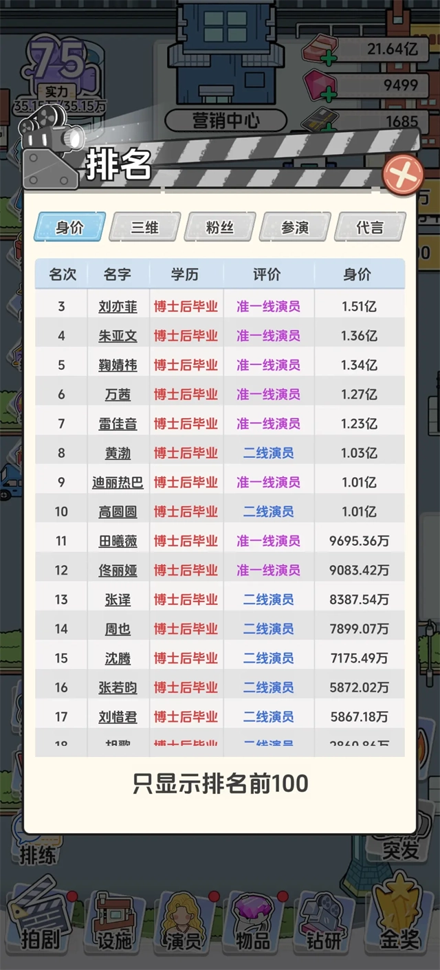 突发、事件和签约都能通过修改时间来刷量,这几个是快速提升数据的主要途径,粉丝数量主要依靠剧本上映后炒CP来增加。