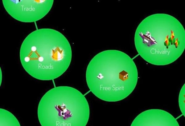 Roads(道路),属于功能类,学习该内容后,能够在非敌对国家范围内的陆地(山地除外)修筑道路。士兵踩在道路上时,沿着道路行进可获得一倍的行动距离加成;若任意一座城市通过某种方式与首都(Capital)相连,便会形成贸易链,分别为这座城市和首都各增加一个人口。