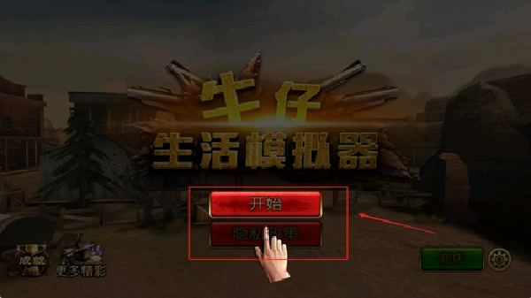 点击“开始游戏”按钮后,你将化身一名牛仔,开启一段布满挑战与机遇的西部冒险之旅。
