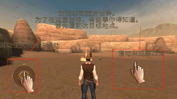 可以通过操作屏幕两侧的摇杆或按钮,来控制牛仔进行移动、转向以及调整视角,从而能够全面地观察周围的环境。