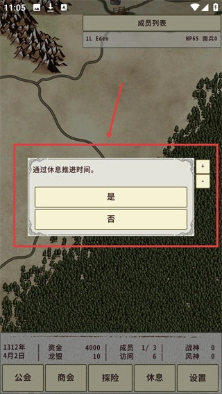 在地图界面点击“休息”选项,之后选择“是”来让时间推进,这样做既能够帮助恢复状态,也可能触发新的事件。