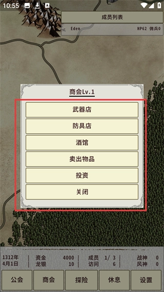 你可以通过【商会】界面进入【武器店】、【防具店】等店铺购买装备,使用货币提升队伍实力,为接下来的战斗做好准备。