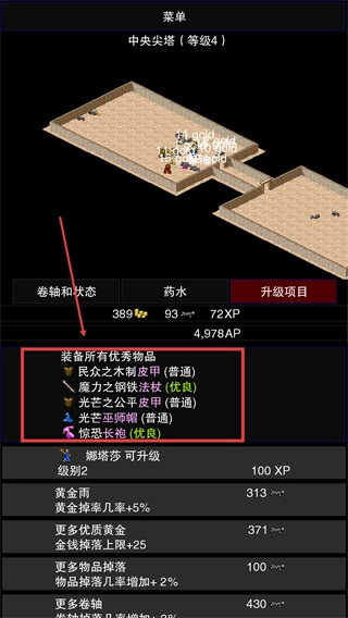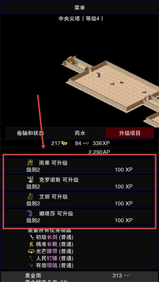 积累【XP】与【AP】后,建议优先提升角色等级,以此解锁新的能力;同时,装备【初级长剑】这类物品也能有效增强战力。