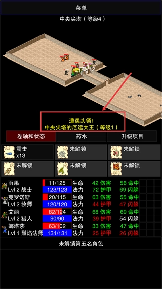 在面对头领【厄运大王】之前,务必先提升角色等级,对技能点进行合理分配,同时借助卷轴增益来提高战斗的胜率。