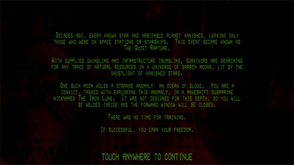而你,恰恰是被委派去执行这次任务的调查员。你要驾驶一艘用废弃空间站零件组装起来的老旧潜艇,潜入这片暗红似血的深渊。