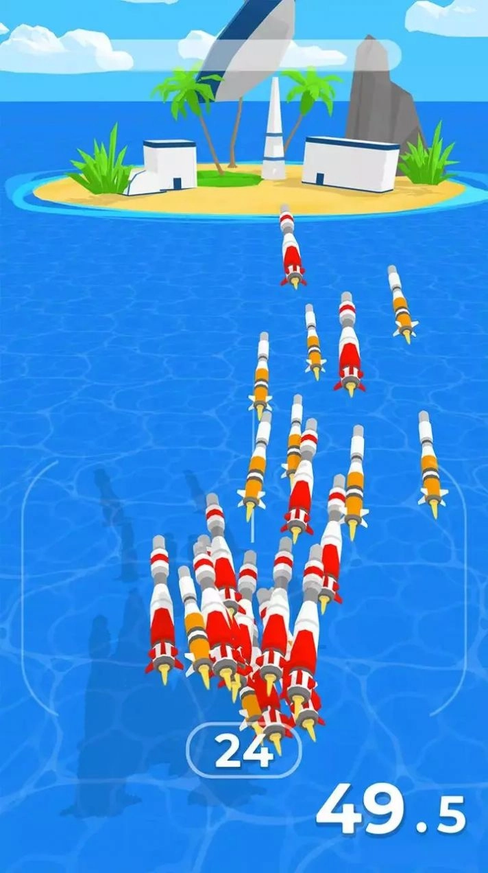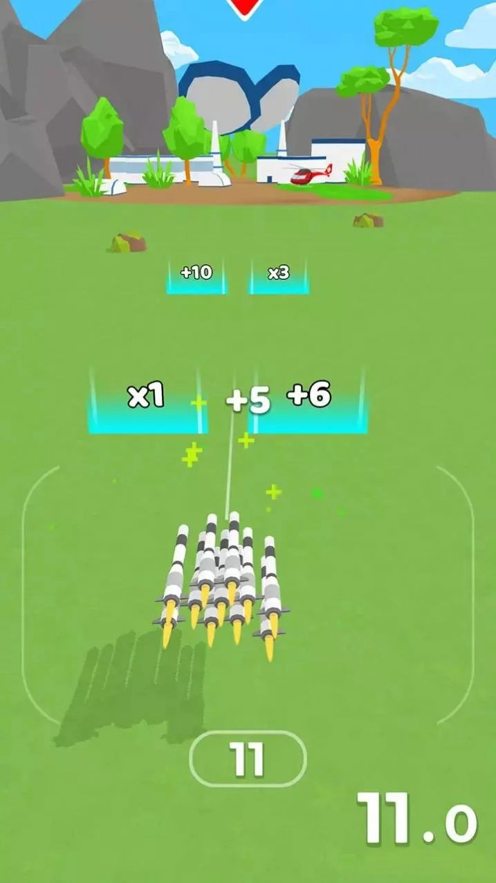 《超级导弹罢工》是一款趣味十足的破坏冲刺类游戏。在游戏中,玩家需要操控导弹穿越各式各样的机关门,这些机关门会对导弹数量产生不同影响。玩家必须保证导弹数量持续增长,唯有如此,才能在《超级导弹罢工》里顺利完成任务,这一点至关重要。