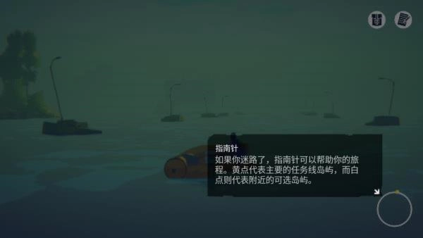 按照系统自动触发的剧情去开启海上冒险之旅,右下角指南针上的黄点是主岛屿的标记,白点则会提示可以选择探索的区域,根据指引航行到黄色地标处就能进入岛屿。