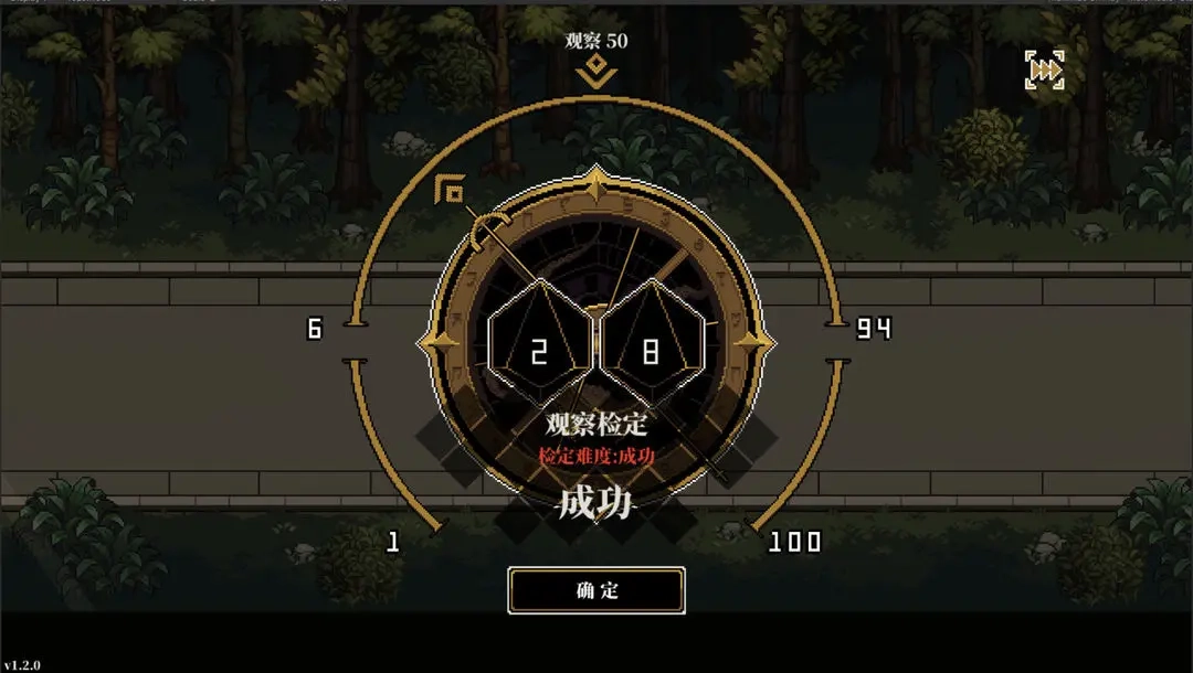 1-5点判定为大成功,96-100点判定为大失败;当数值达到对应技能点数的1/2时,判定为困难成功;达到对应技能点数的1/5时,则判定为极难成功。游戏内成功的视觉反馈是金色箭头,失败则是红色触手,它们的外观会随着具体点数的不同而发生变化。