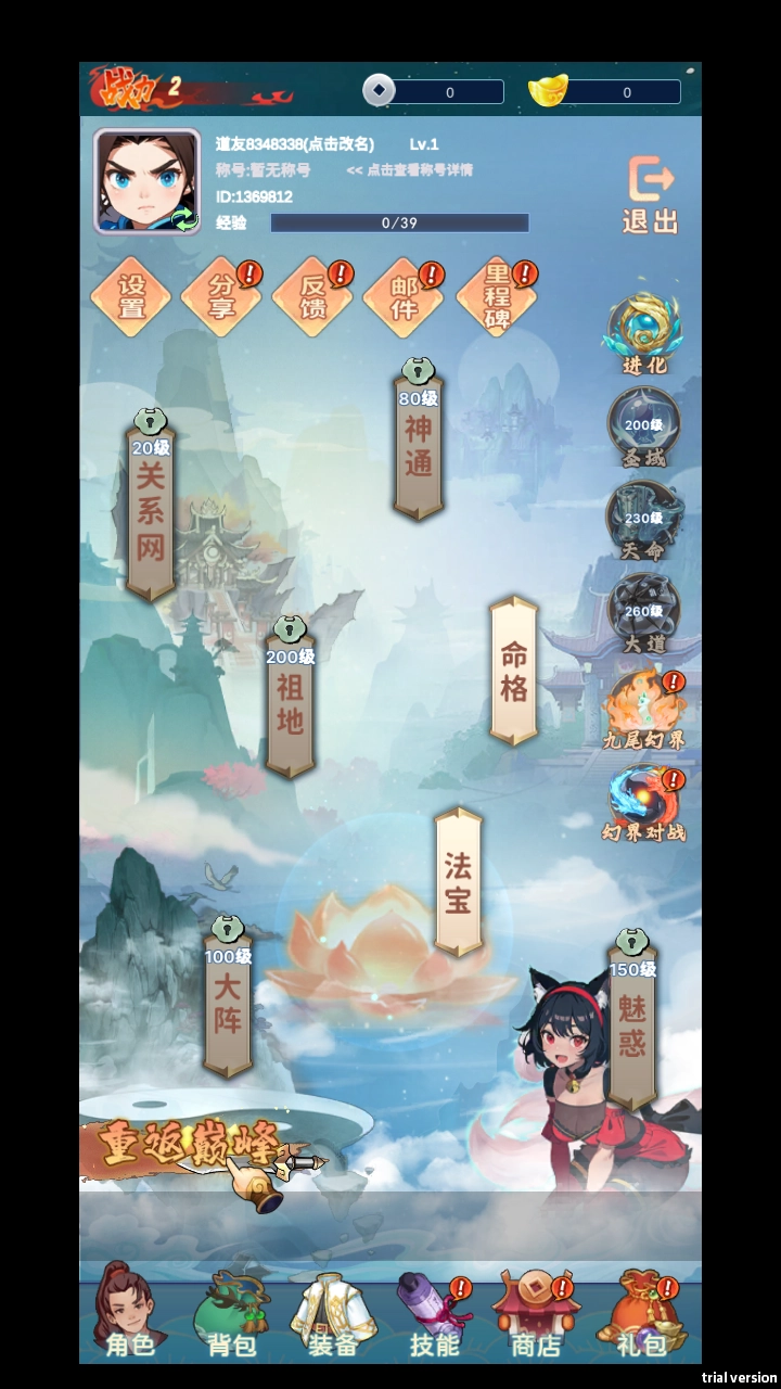 在公测首次进入游戏,完成新手指引后,建议先点击邮件领取所有奖励。邮件中可获取“青丘女帝”,拥有该角色后即可解锁离线挂机特权。