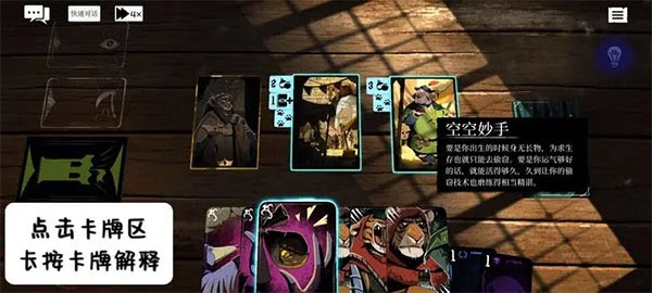 卡牌:每张卡牌的效果各有不同,前期推荐多尝试点击,以获取最佳效果。