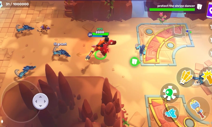 直接进入传送门后,地图里会涌现大量怪物,你可以通过左侧的虚拟按键操控角色自由移动。
