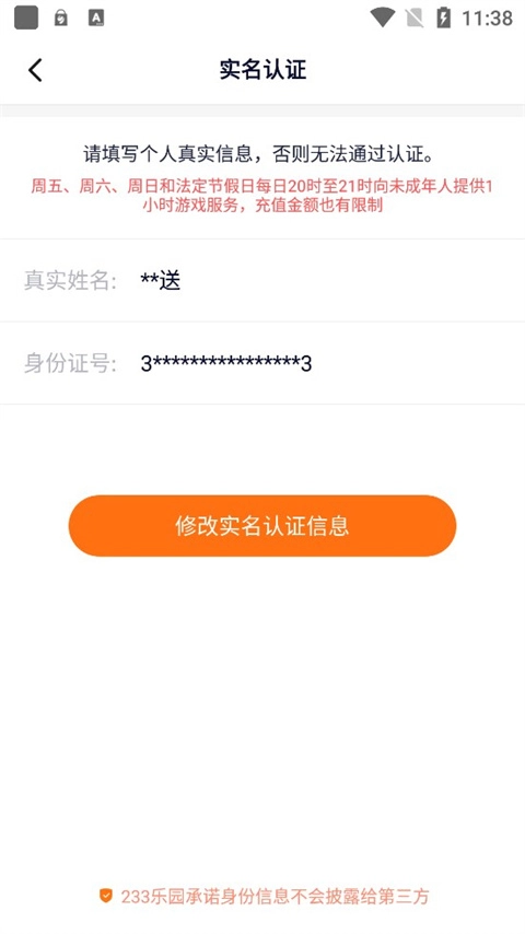 点击修改后,当前实名认证信息会被清除,且实名认证信息每天仅有十次清除机会。