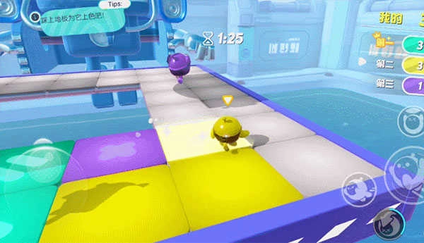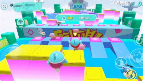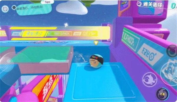 竞速玩法里,障碍物向来是一大难题——翻转的地板、摇晃的摆锤、移动的方块、反向的履带……这些都是影响我们快速通关的关键因素。面对常规障碍物,找准时机慢慢跳当然能过去,但最快捷的方式无疑是开启“滚蛋”模式直接翻滚。进入这个模式后,角色速度会显著提升,跳跃距离也会随之增加,所以碰到那些需要跳跃(或者等待时间较长)的障碍时,完全可以用一次远跳直接跨越,轻松过关。