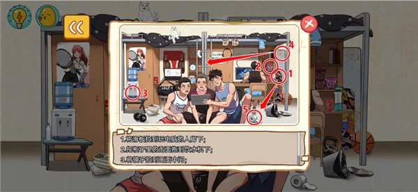 把潘周聃书桌右边的“老坛酸菜泡面”拖到左边饮水机那里接水,中间的男生就会去吃这碗泡面