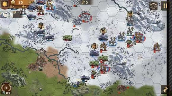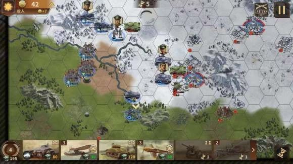 资源管理方面,战场的核心资源是“补给点”和“弹药”。补给点的获取途径是占领城市、港口这类战略要地,它主要用于招募部队以及修复装备;弹药的数量是有限的,尤其是坦克、火炮部队对弹药的消耗量比较大,所以需要依靠补给线(也就是连接补给点和部队的虚线)来持续补充。一旦补给线被切断,部队的攻击力就会出现大幅下降的情况。