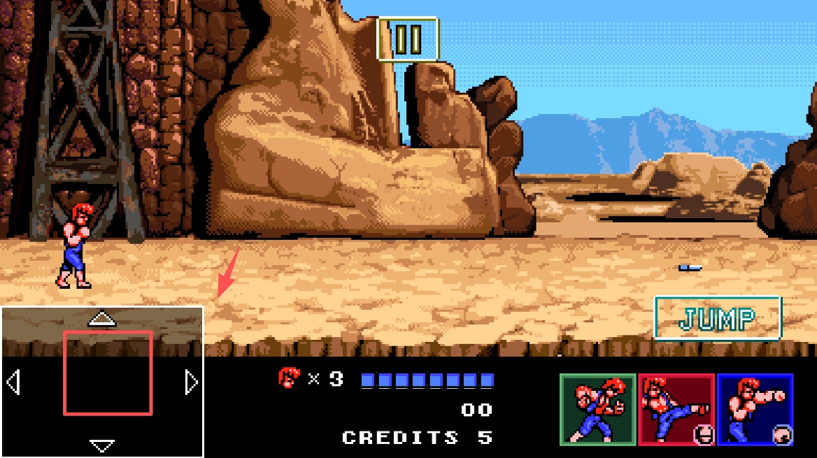 最后,在遭遇敌人时,借助“JUMP”按钮实施跳跃攻击,战胜对手后,便可继续向前推进。