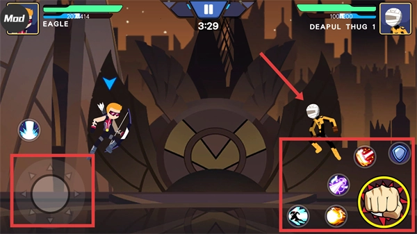在战斗过程中,你可以通过操控左侧的【移动轮盘】来调整角色的移动位置,同时点击右侧的【技能按钮】就能对敌人发起攻击。