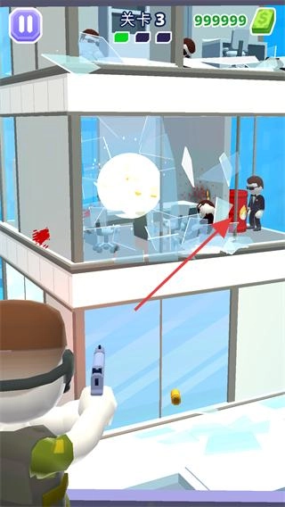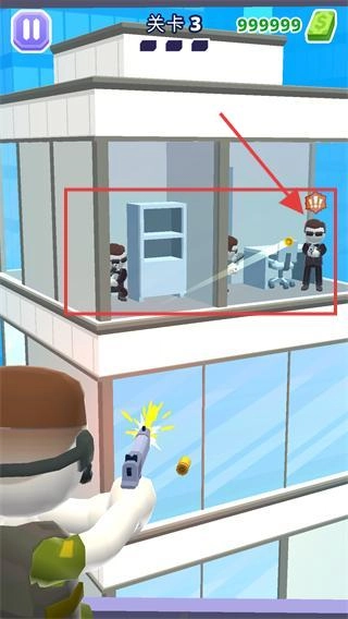 观察场景里的目标(比如办公室中的敌人),对准目标所在区域开枪射击。