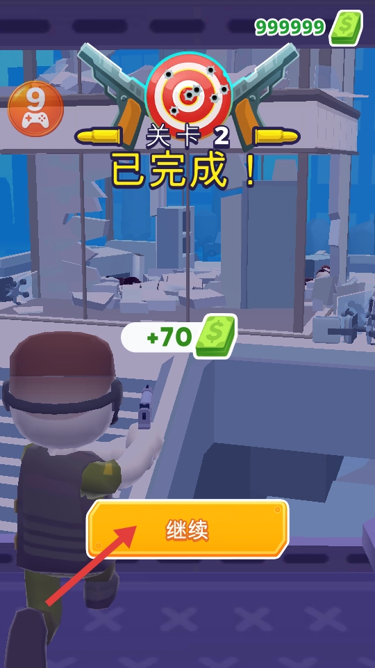 关卡完成后,点击【继续】按钮,继续挑战后续关卡。