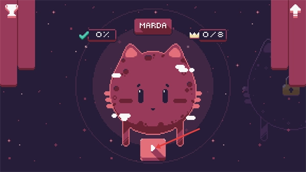 留意【MARDA】模块当前【0%】的进度和【0/8】的皇冠数量,点击下方带有箭头标识的按钮,即可触发与该猫咪形象的互动,从而推动游戏进程。
