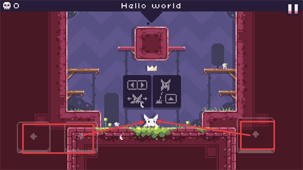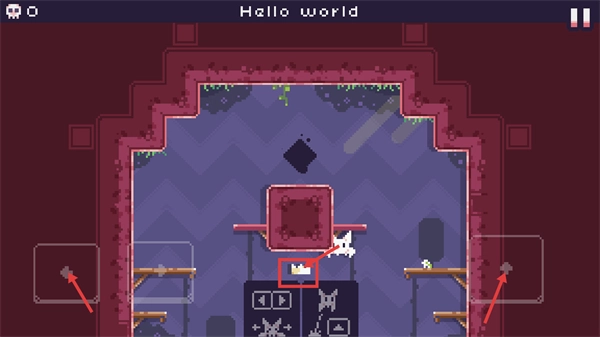 在【Hello-world】场景里,你可以借助左右两侧的控制键来操控角色移动,当角色靠近带有图案的方块时,试着与其进行交互,以此推动当前关卡的进程。