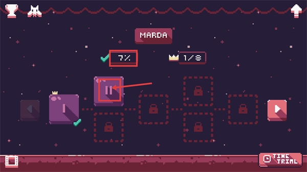 查看【MARDA】模块当前【7%】的进度以及【1/8】的皇冠数量,点击带有箭头标识的方块,解锁对应的带锁区域,以此来推动游戏进程。