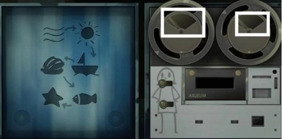 在录音机里,依据文字给出的线索,转动完相应的圈数之后。