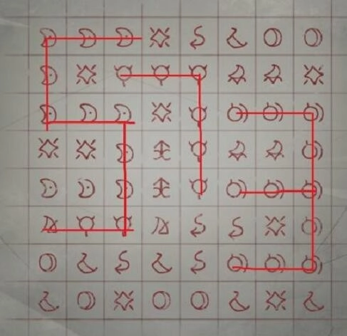 书上的信息表明,蜡烛上符号的连线与桌上的密码是对应的。