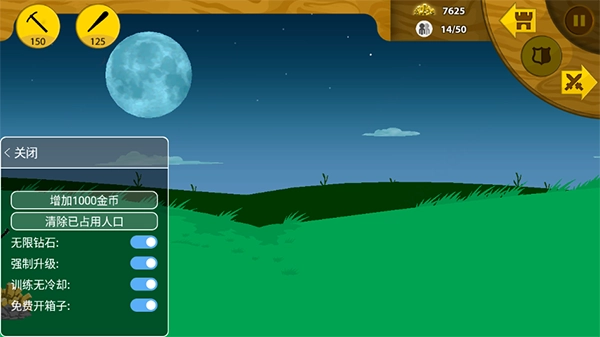 游戏配备了无限人口、无限宝石等强力辅助功能,能帮助玩家更轻松地培养火柴人军队,尽情享受爽快的战斗乐趣。